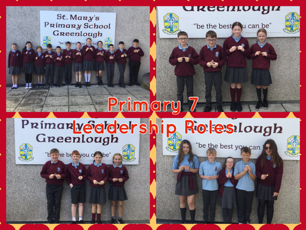 Our Primary 7 class are given the opportunity to develop their leadership skills throughout the school year. They are appointed to specific roles of responsibility such as: